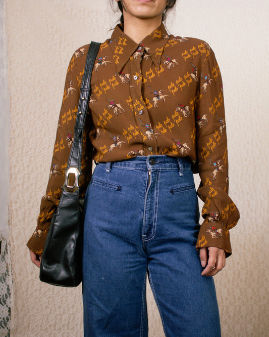 Vintage 70s Novelty Print Horse Blouse | Size M-L