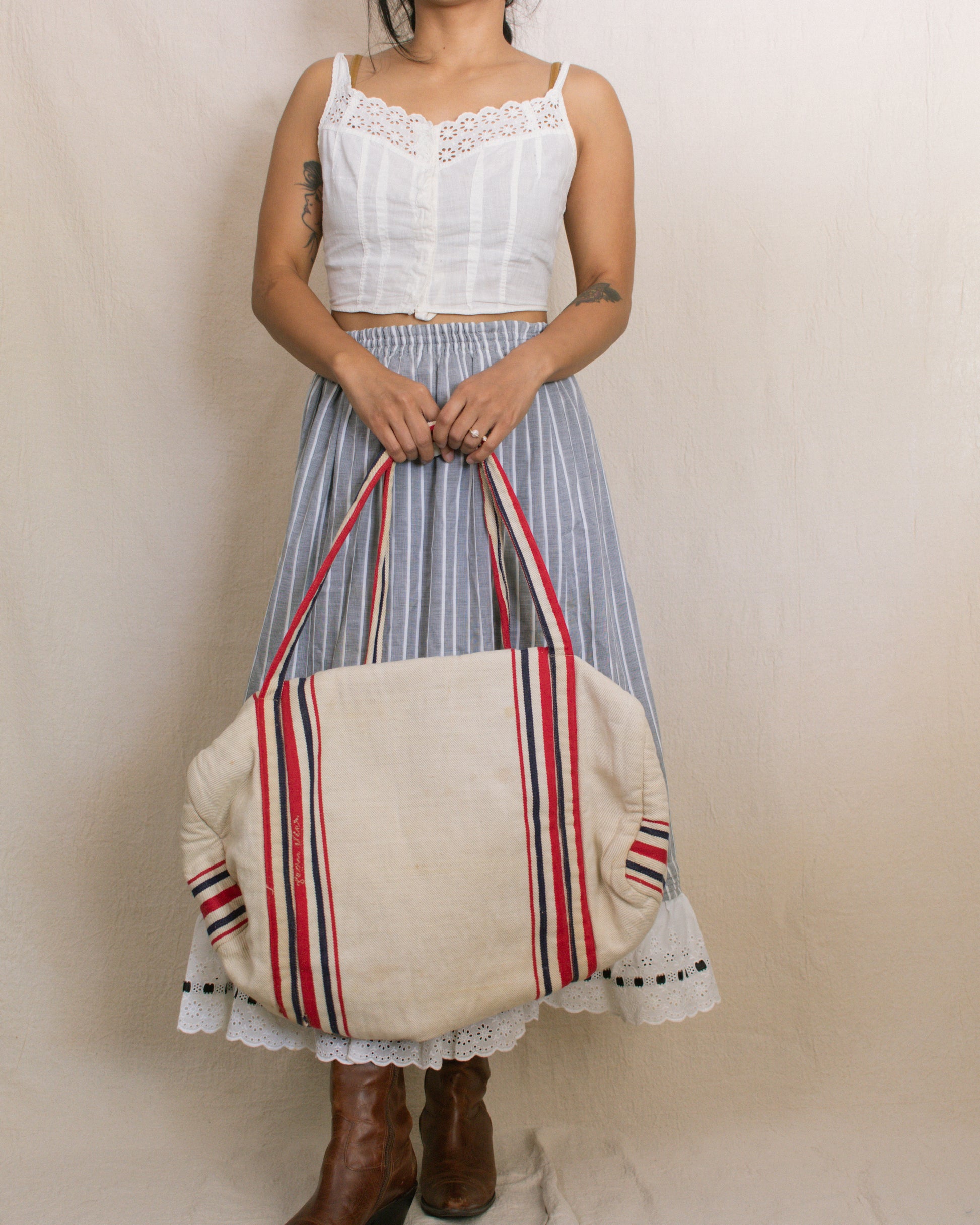 Vintage Striped Duffel Bag